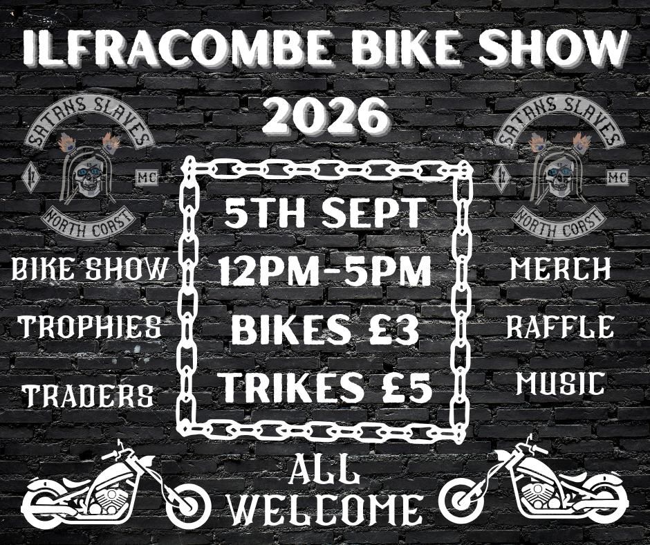 This popular event staged along the Seafront for a number of years is run by Satans Slaves MC North Devon. Motorcyclists travel from near and far, some local, some from as far as Coventry. This event is open to all riders and also open to the general public.