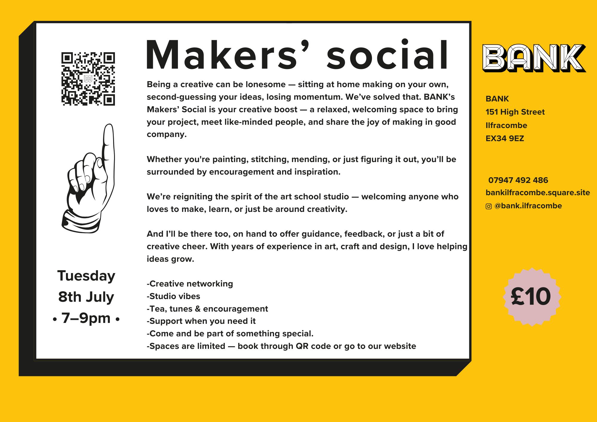 The Makers’ Social is your creative boost — a relaxed, welcoming space to bring your project, meet like-minded people, and share the joy of making in good company.