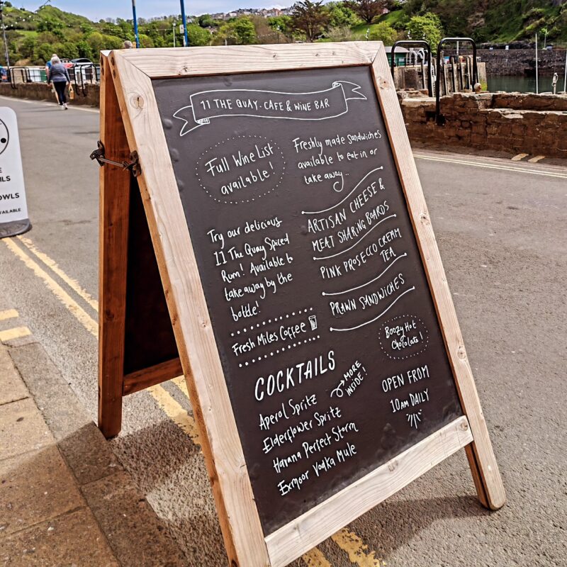 11 The Quay is an independent wine bar with fantastic views of Ilfracombe Harbour and an extensive wine list. We offer small bowls, nibbles, sharing boards and also cakes and coffees.