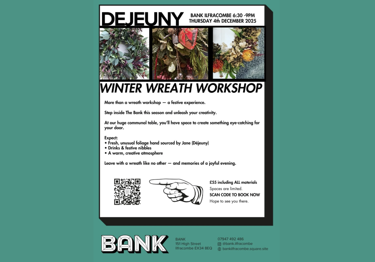 More than a wreath workshop — a festive experience. Step inside The Bank this season and unleash your creativity. At our huge communal table, you’ll have space to create something eye-catching for your door. Expect: • Fresh, unusual foliage hand sourced by Jane (Déjeuny) • Drinks & festive nibbles • A warm, creative atmosphere Leave […]