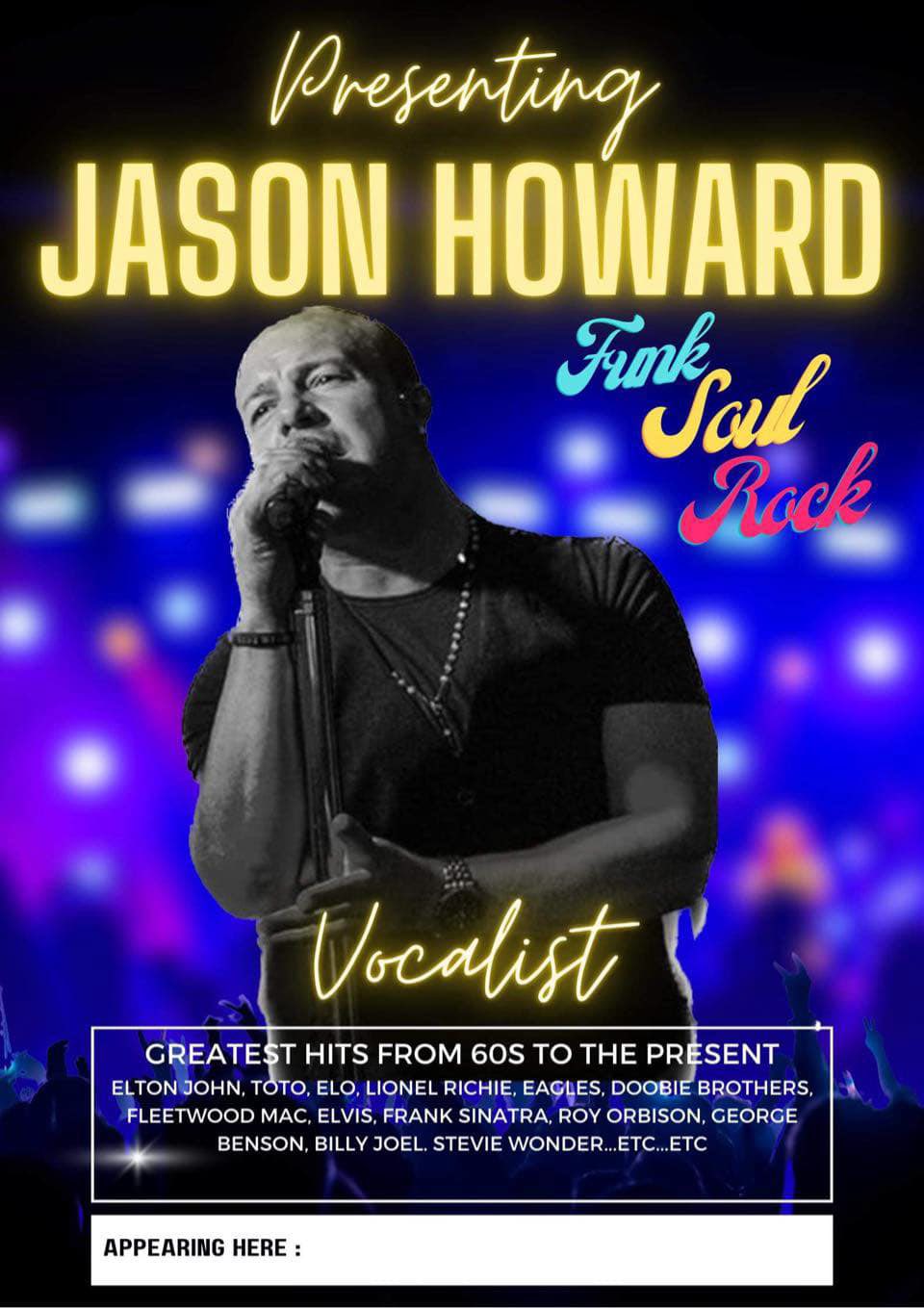 Solo vocalist, Jason Howard with soul, funk, rock!! 8pm. DO NOT MISS THIS WEEKEND
